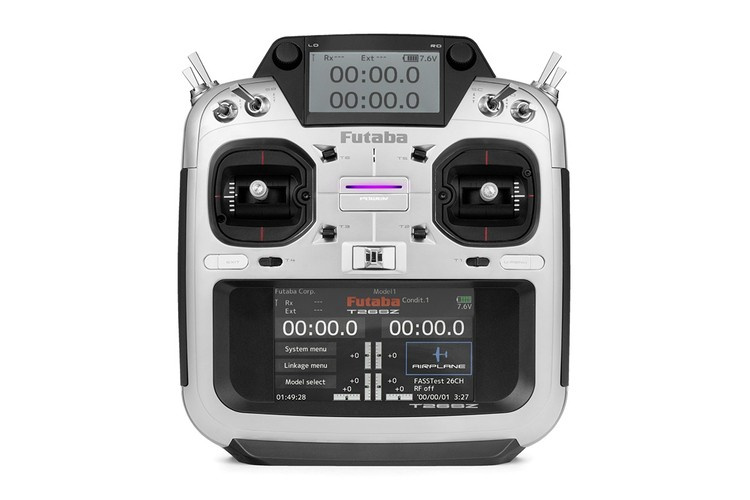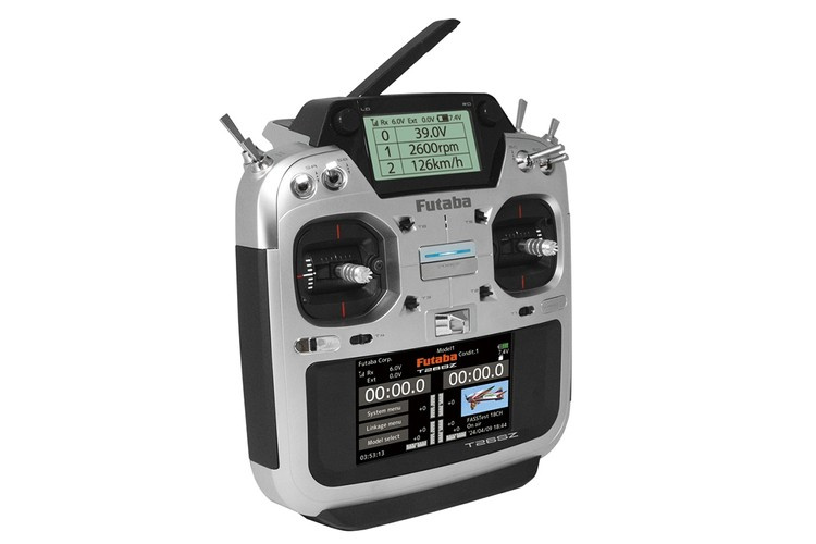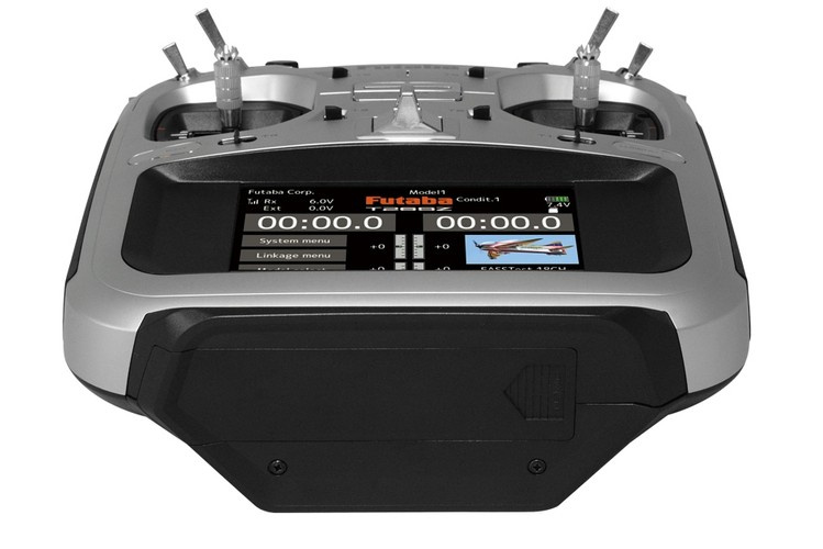 Futaba FASSTest 26-channel RC kit (26/18/12CH) and T-FHSS Air with telemetry, S-FHSS 2.4GHz. Touch LCD display, precise cross controls, 8 switches, 4 sliding and 2 rotary controls, 2 digi trims. Memory of 30 models + SD card, advanced programs for aerobatic planes, gliders, helicopters and multicopters. Free assignment of functions, up to 8 years. modes. With R7208SB receiver.