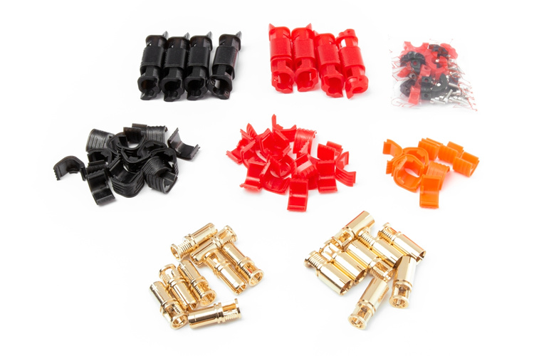 Gold-plated 7mm connectors with housing for 8AWG cable. Constant current 280A, peak 320A. Solderless version - the cable is secured with two Allen screws. Pack of 2 pairs (1 red and 1 black).