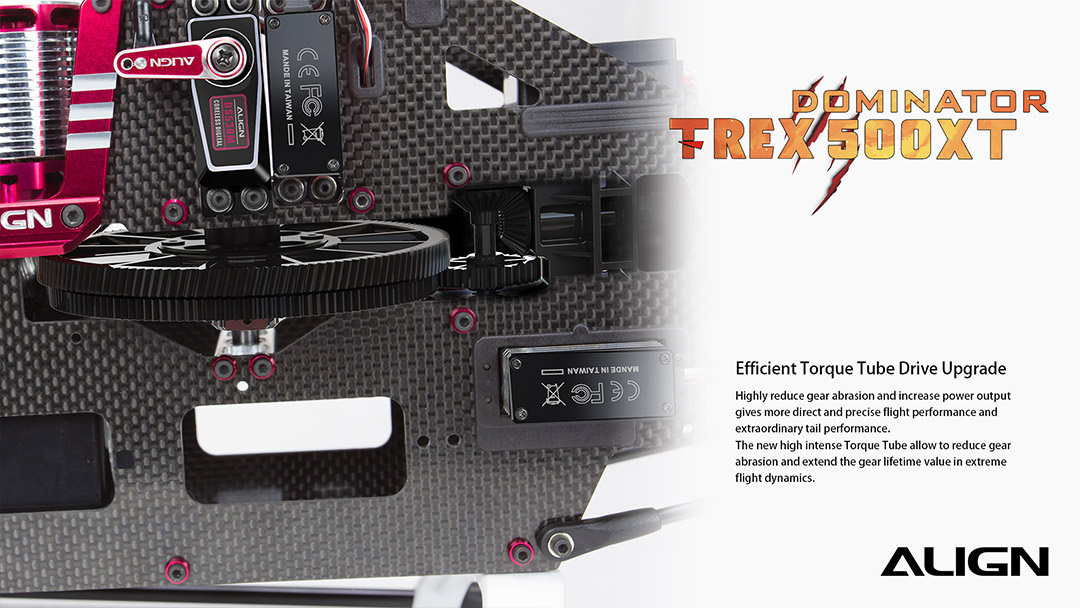Całkowicie nowa niska głowica zapewnia zmniejszenie oporów a także zwiększa wydajność podczas lotów 3D. Szybsza odpowiedz i precyzja, a ponadto elementy anodowane na kolor czerwony znacznie poprawiają efekt wizualny na wzór T-rexa 700.