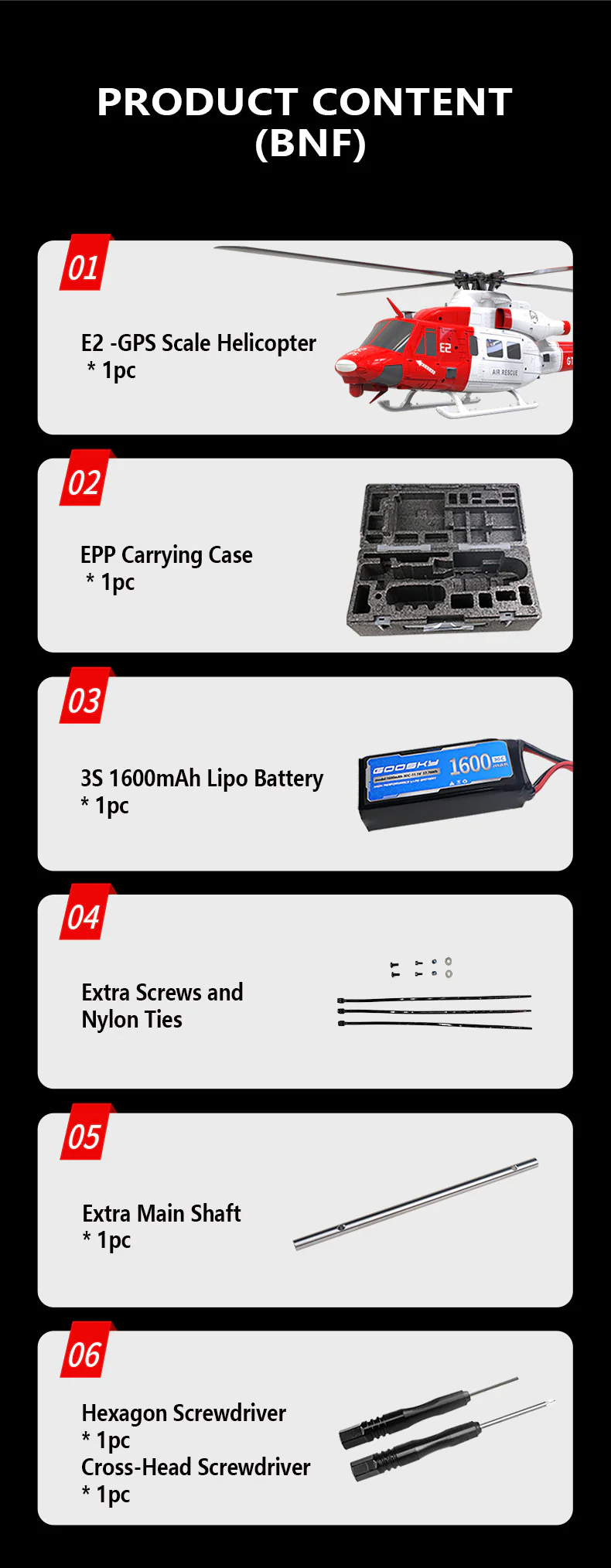Zalecamy używanie z nadajnikiem Goosky A8 lub uniwersalnym nadajnikiem helikopterowym (Spektrum, Futaba itp).