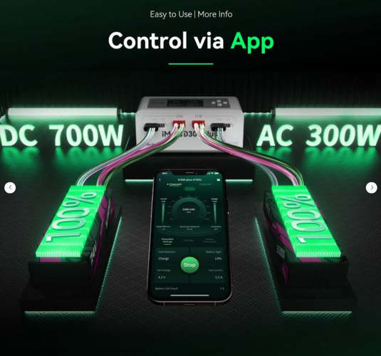 Gens Ace iMars D300 Plus to nowa, dwukanałowa inteligentna ładowarka oparta na modelu D300. Zachowuje kluczowe funkcje systemu G-Tech i dodatkowo oferuje zdalne sterowanie przez Bluetooth. Entuzjaści RC mogą teraz korzystać z aplikacji Gens Ace do zarządzania ładowarką oraz podglądu większej ilości danych w czasie rzeczywistym i zapisów historycznych, co sprawia, że obsługa jest prostsza, bardziej wydajna i bezpieczniejsza.
